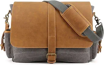 2. Gray Canvas Laptop Messenger Bag with PU Faux Leather Accents by Plambag