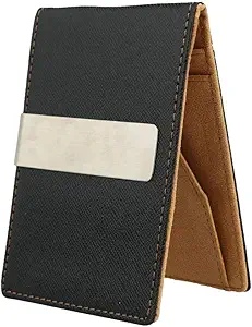 5. Men’s Black Faux Leather Money Clip Slim Wallet from WQF
